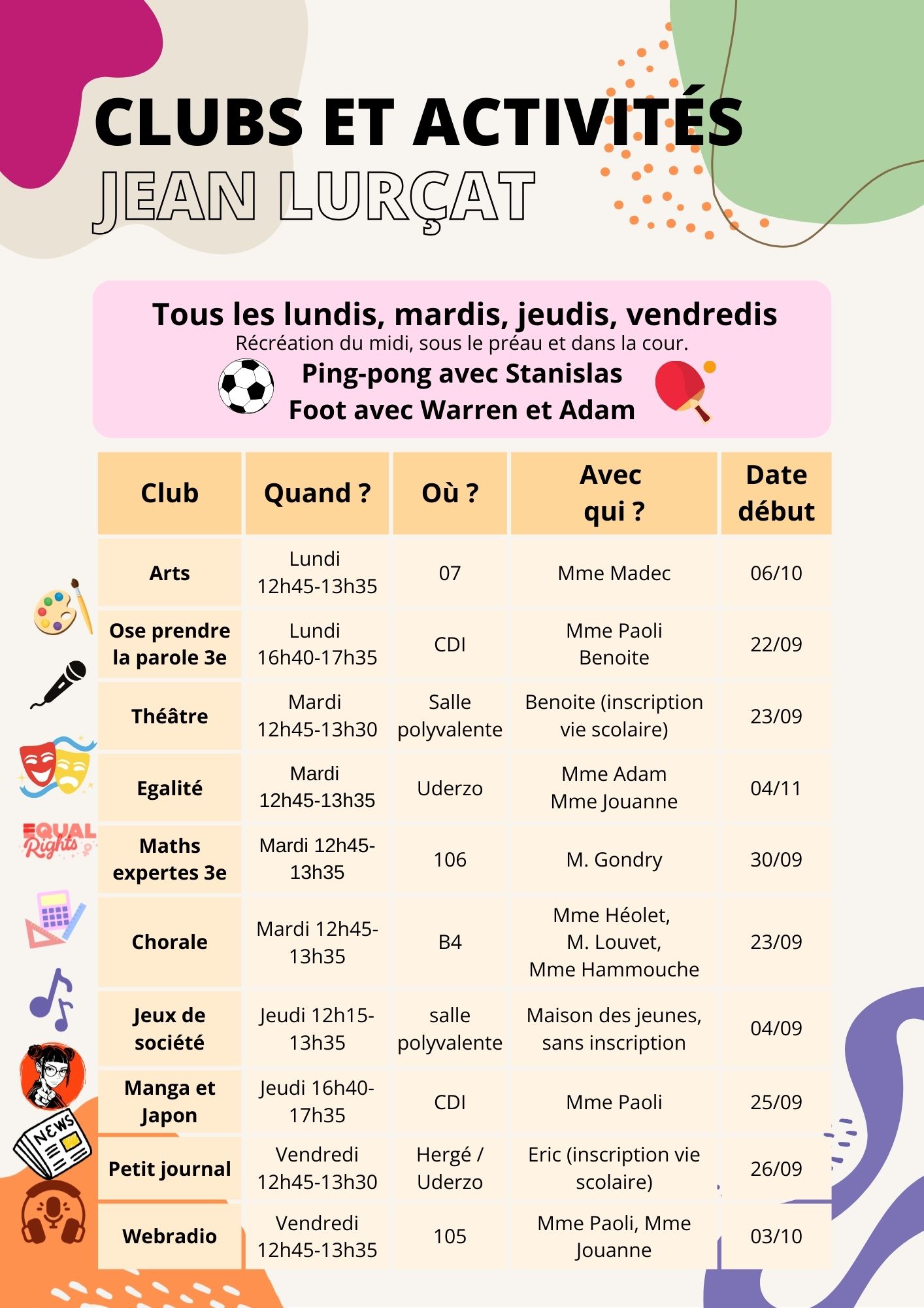 2025 Clubs et ateliers : inscrivez-vous !